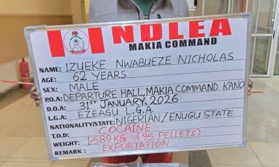 of the National Drug Law Enforcement Agency (NDLEA) at the Mallam Aminu Kano International Airport (MAKIA) Kano have arrested a 62-year-old Lagos-based businessman, Nwabueze Nicholas Izueke,...