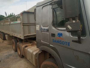 The trucks have Dangote Cement logo clearly inscribed on them.