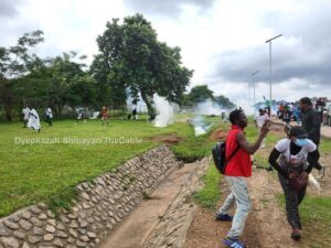 They had not spent up to an hour when policemen on ground fired gunshots and teargas to disperse them.