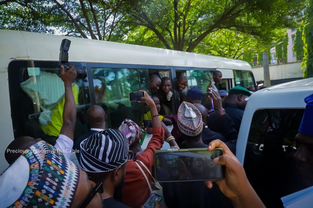 Others on hand to receive the minors are Tunji Alausa, minister of education; Nentawe Yilwatda, minister of humanitarian affairs and poverty reduction; Balarabe Lawal, environment minister; and Tanko Sununu, minister of state for education.