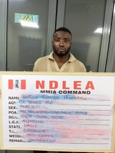 Operatives of the National Drug Law Enforcement Agency (NDLEA) have arrested an ex-international football player Segun George Hunkarin along with his businessman partner, Ntoruka Emmanuel Chinedu, over attempt to smuggle a consignment of cocaine into Nigeria through the Murtala Muhammed International Airport,(MMIA) Ikeja, Lagos.