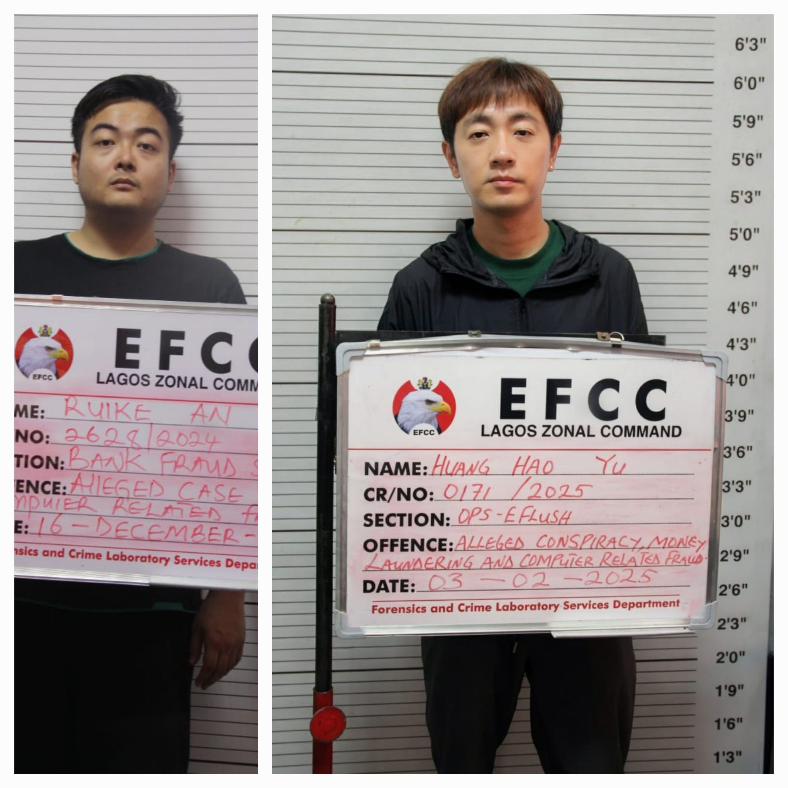 Justice Daniel Osiagor of the federal high court sitting in Ikoyi, Lagos, on Wednesday, February 11, 2026, convicted and sentenced two Chinese nationals: Huang Haoyu and An Hongxu, to 46 years’ imprisonment each for cyber terrorism and internet fraud.
