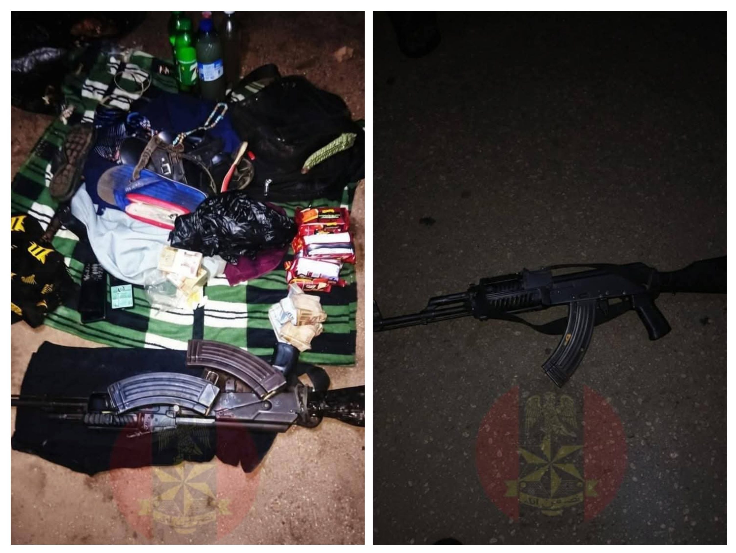 “Items recovered from the encounter with the criminals include; one AK-47 rifle with two magazines and 61 rounds of ammunition, three mobile handsets, a jackknife, torchlight, suspected illicit drugs, charms and the sum of ₦39,000 among other personal effects.