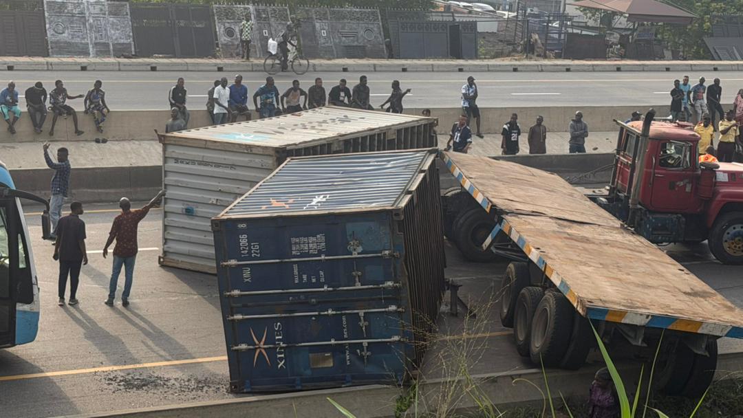 Total lockdown as container-laden truck overturns on Otedola bridge