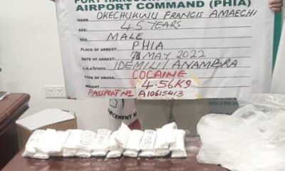 Operatives of the National Drug Law Enforcement Agency (NDLEA) arrested one Nnanna Anayo Michael, with 8.15 kilograms of cocaine during the inward screening of passengers...